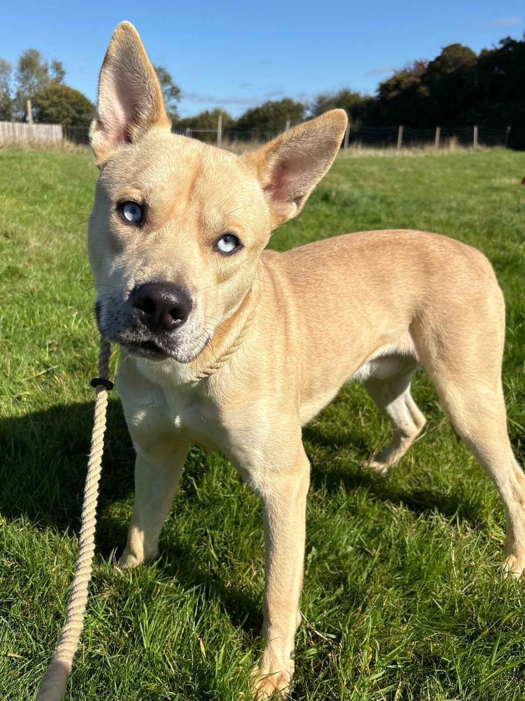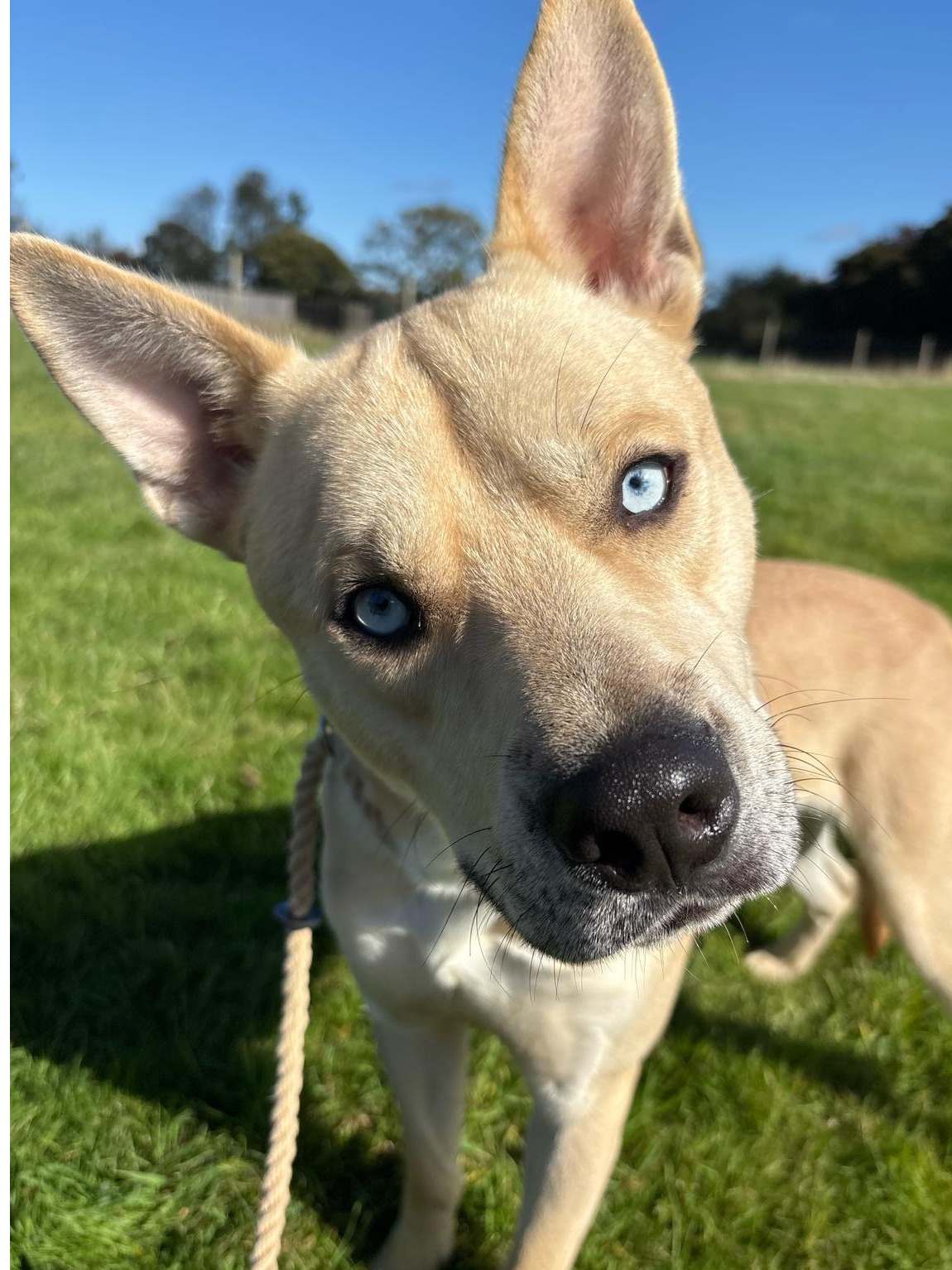 Rowan loves exploring our fields and has really enjoyed running and playing with us. He is a big foodie and was a little underweight when he first arrived but lots of yummy food and treats have helped him to gain weight as well as helped us to gain his trust. Rowan has been good with the other dogs at the centre and at the pound.