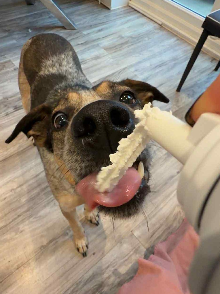 Cindy is very clever, thrives on routine, and is already fully toilet trained. We’re currently working on gentle eye contact with treats to help build trust and positive associations with people and she’s making lovely progress each day.