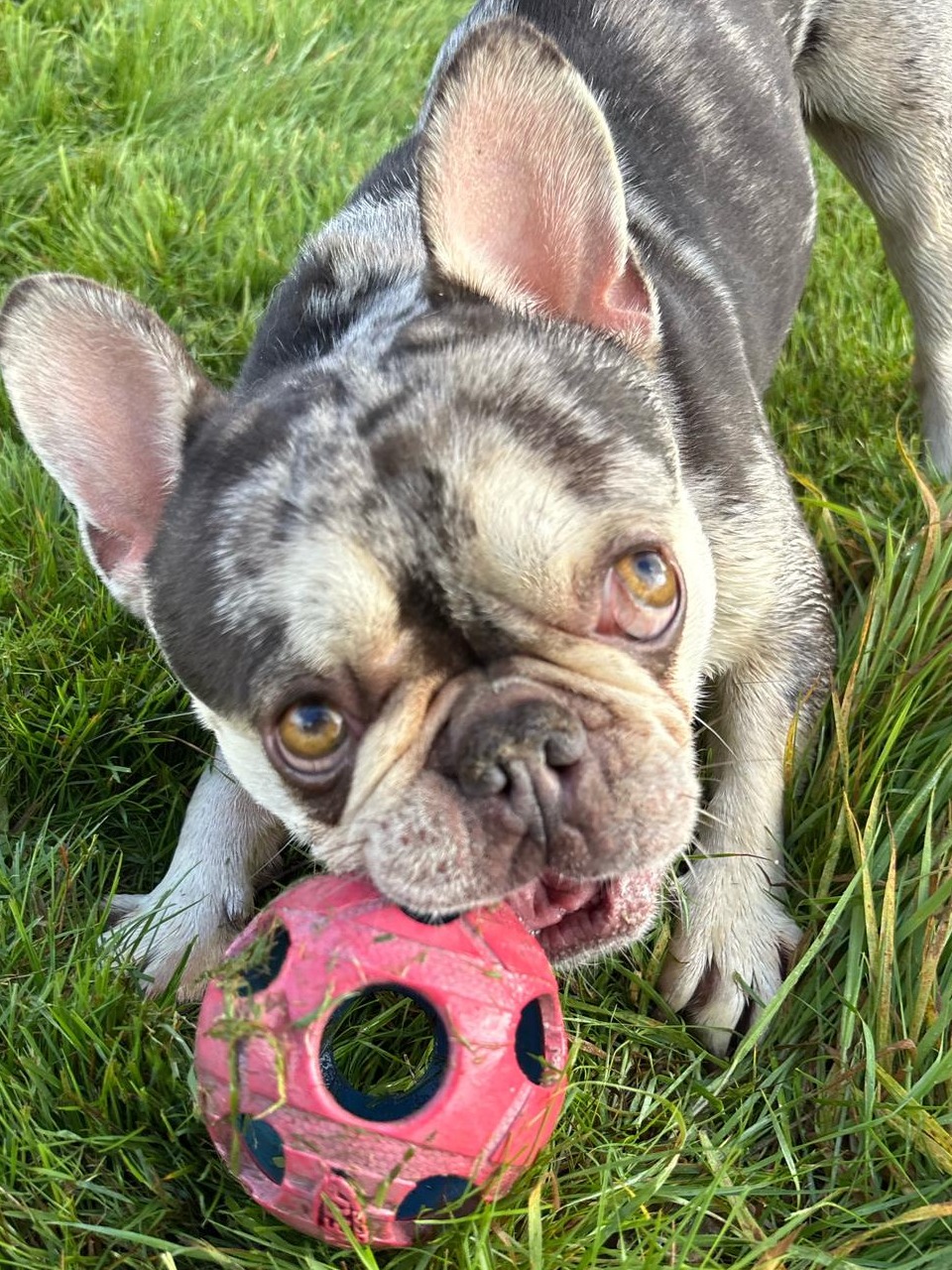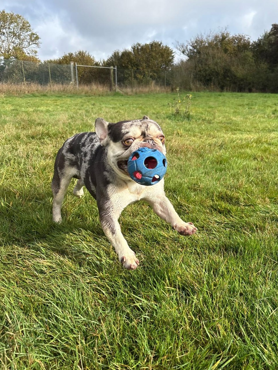 Gomez is a sweet and affectionate boy who loves to sit on our laps whenever he gets the chance. He is also a very playful boy and he LOVES to play fetch and bound around our fields. He has been good with everyone he has met so far and has been great with the other dogs at the rescue centre and at the pound.
