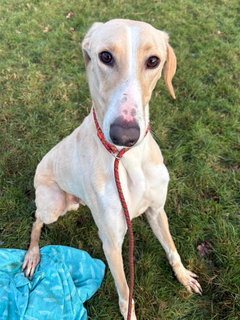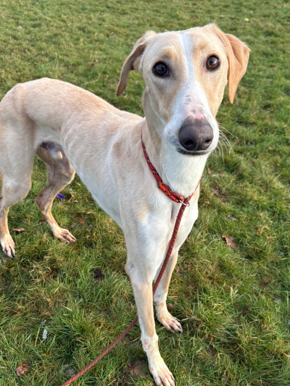 Henry is a very happy boy. His helicopter tail and wiggly bum show how happy he is to meet new people. He loves to zoom around our field but loves affection and cuddles a lot more. Henry really likes food and treats and even though he was underweight when he arrived to us, he is slowly putting on weight. Henry has been good with the other dogs at the centre.