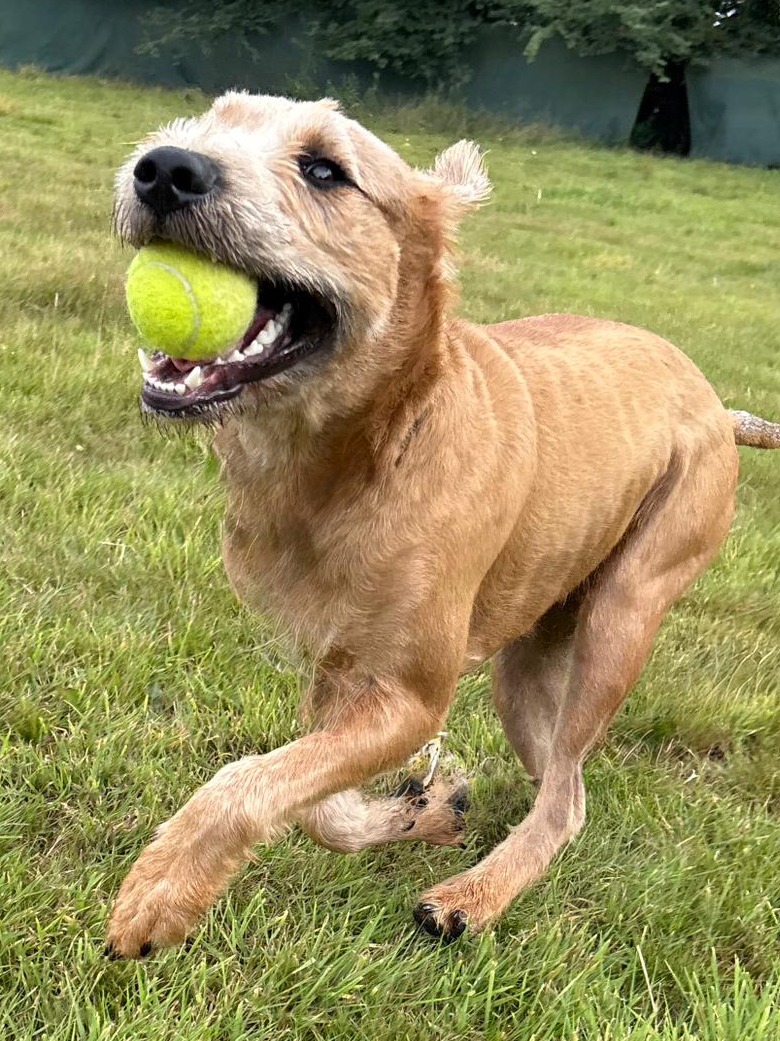 Noodle is a big lovable goofball. He is a big bundle of joy and love. He loves to play with toys and zoom around our field. He has been good with everyone he has met and has been good with the other dogs but as he is a puppy he does need to learn some manners. According to his previous family, he was great in the house and just wanted to have cuddles ans give love to his family.